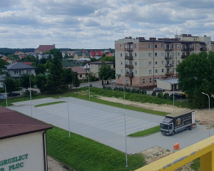 Jeśli chodzi o teren wokół, prace nad nowym parkingiem są już niemal zakończone. Nawierzchnia jest praktycznie gotowa, a cała przestrzeń została zagospodarowana, zapewniając komfortowy dojazd i miejsca parkingowe dla pacjentów i odwiedzających.