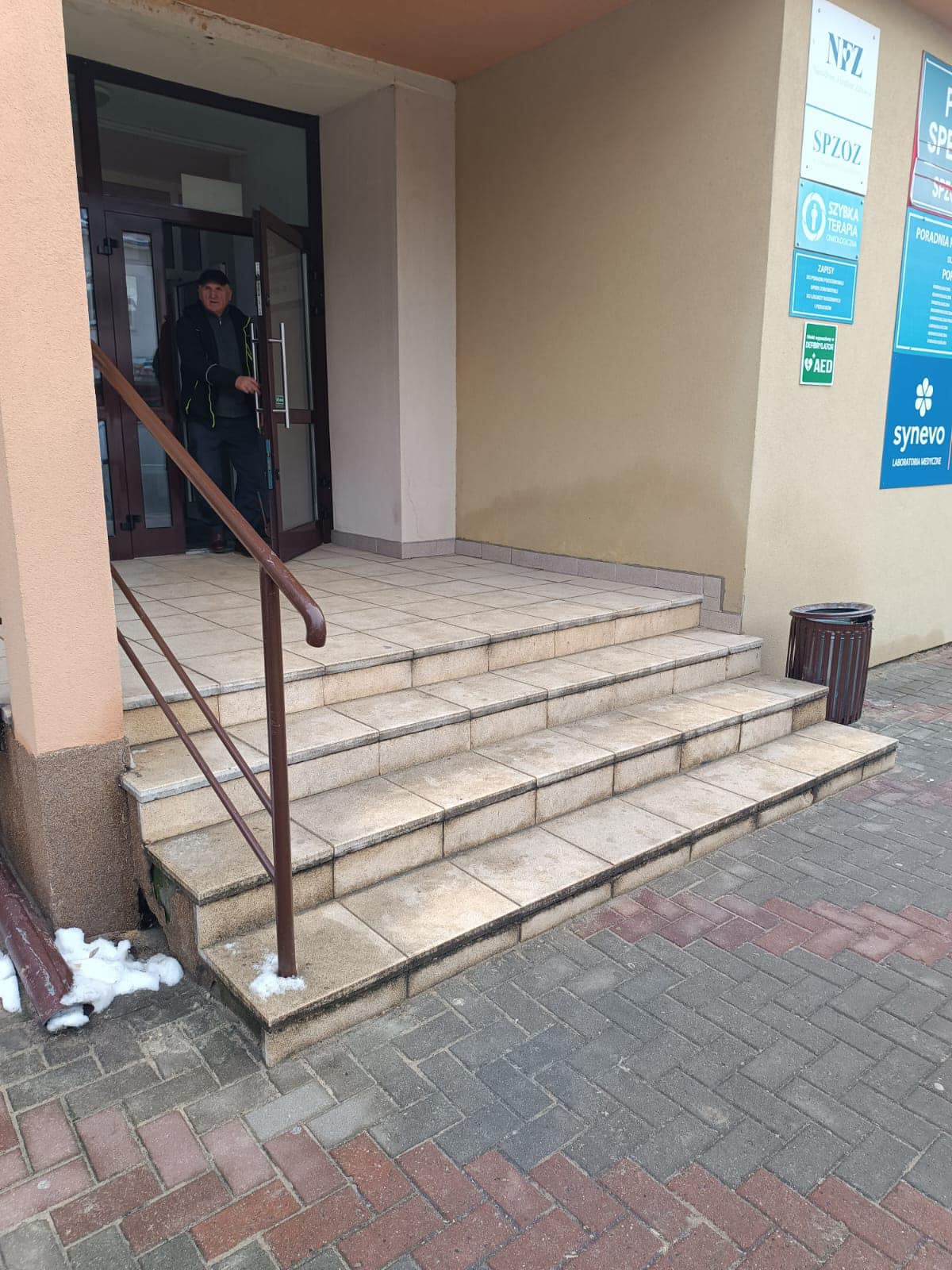 1. Modernizacji wejścia głównego - wymiana nawierzchni schodów zewnętrznych z uwzględnieniem oznakowania dla osób niedowidzących, wymiana podestu na pochylni, nowe barierki na podjeździe i przy schodach zgodne ze standardami dostępności