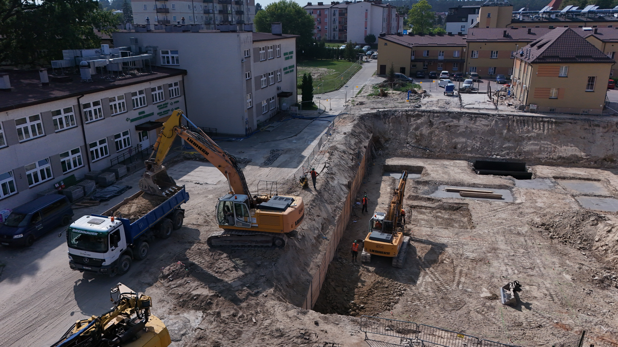 Roboty ziemne dotyczące budowy Centralnego Bloku Operacyjnego dobiegają końca - fotorelacja.