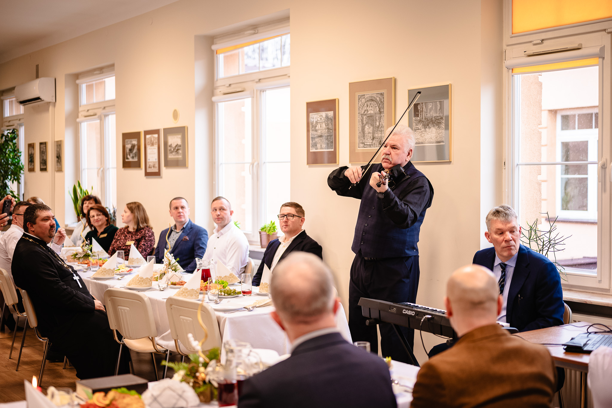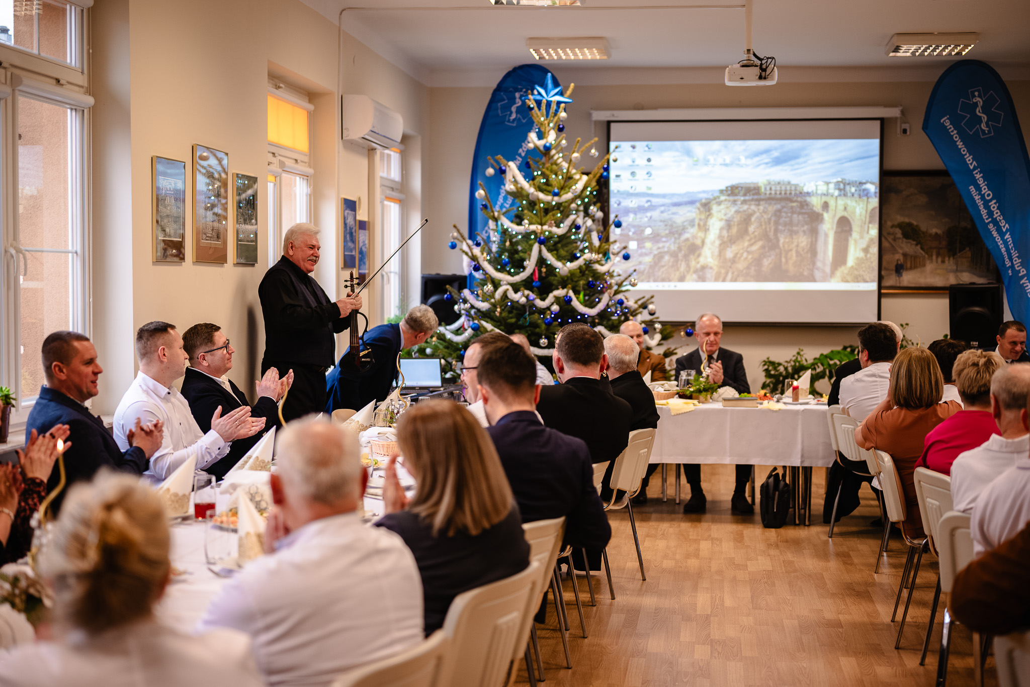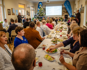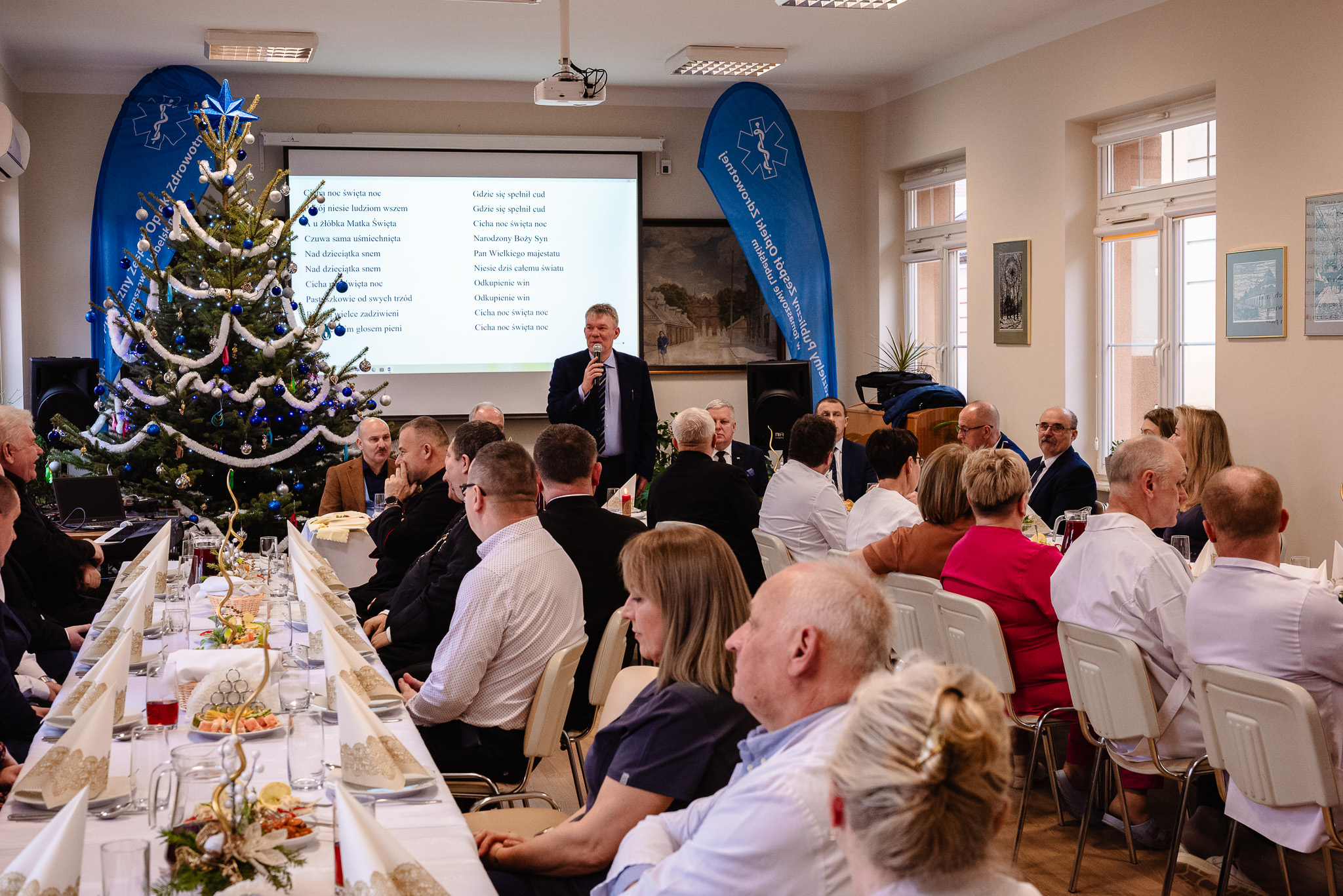 W serdecznej i miłej atmosferze w dniu 23.12.2024r. odbyło się tradycyjne spotkanie opłatkowe w naszym Szpitalu. Pracownicy oraz zaproszeni goście spotkali się, aby podzielić się opłatkiem, złożyć sobie świąteczne życzenia i wspólnie kolędować. Chwila refleksji pozwoliła oderwać się od codziennej pracy oraz obowiązków dnia codziennego.