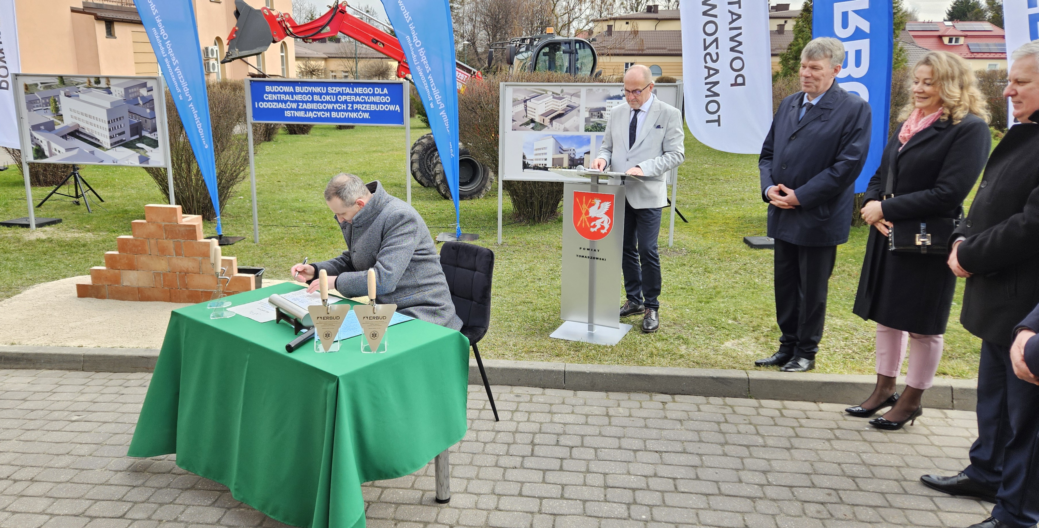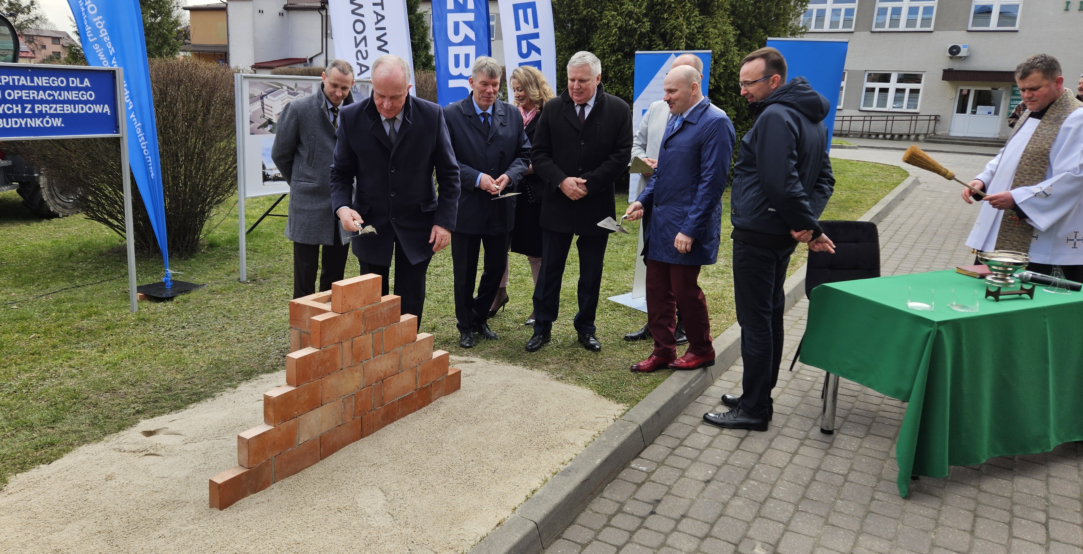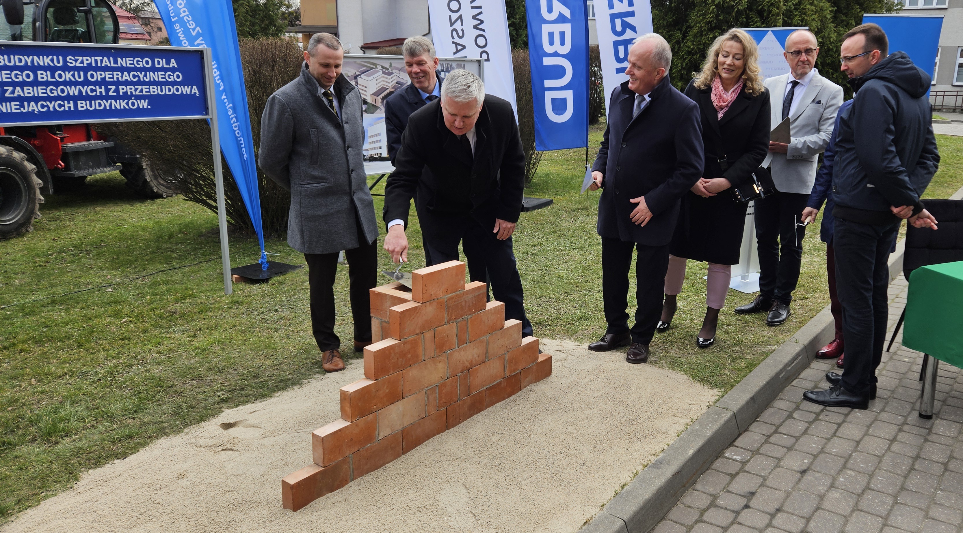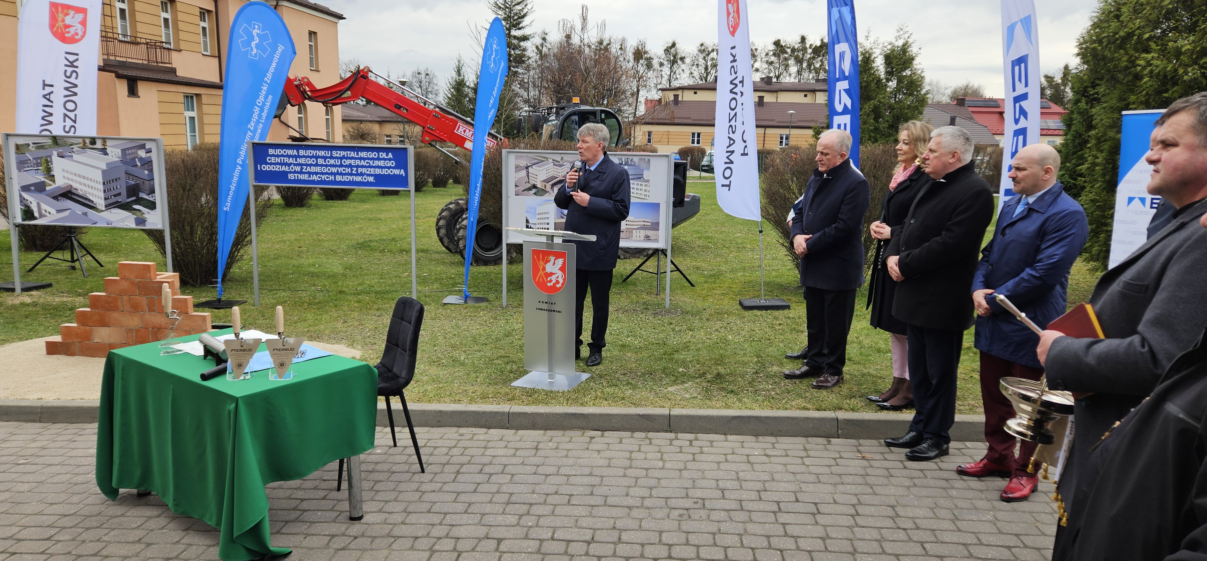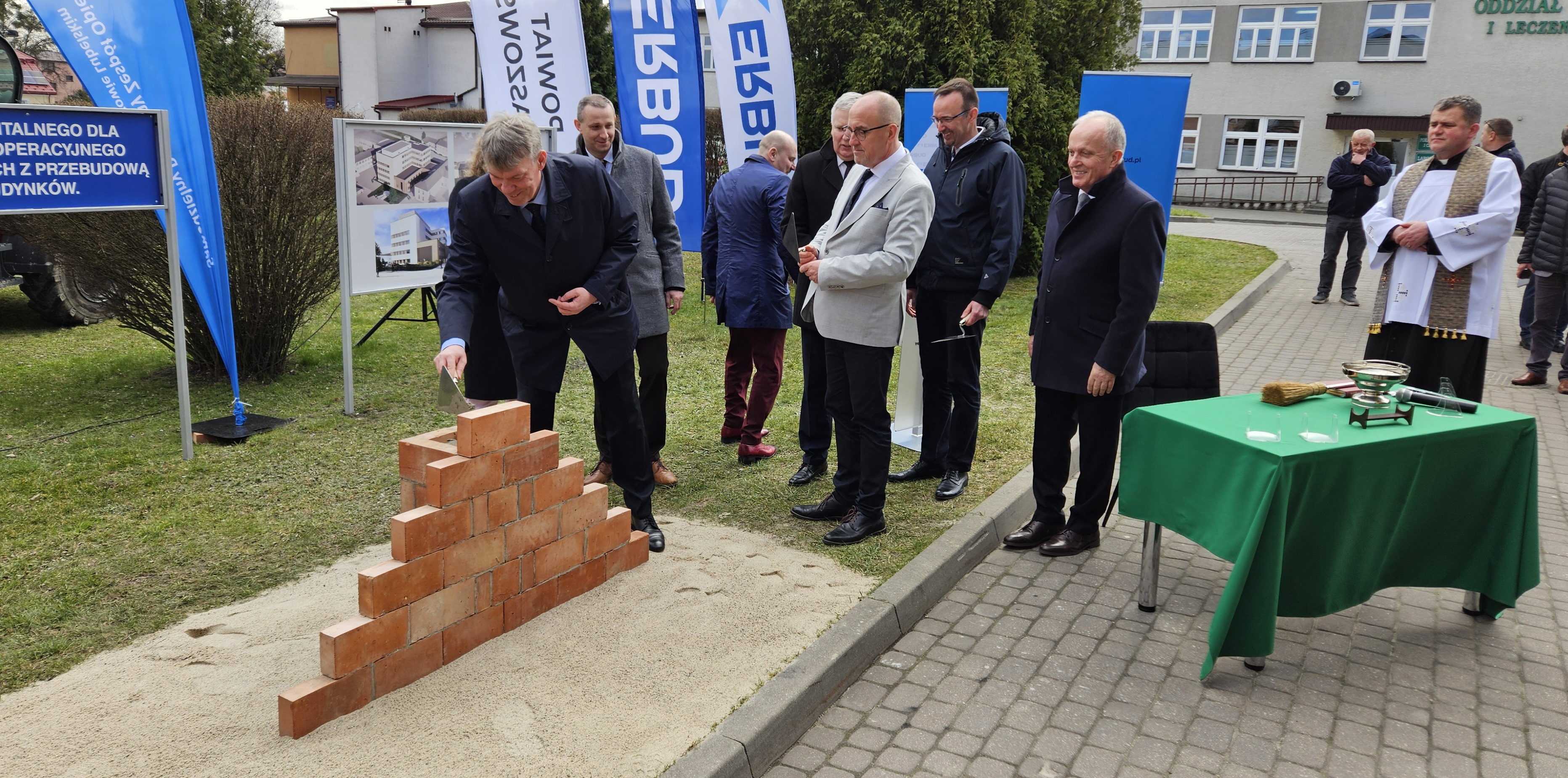 W dniu dzisiejszym wmurowano Kamień Węgielny pod „Budowę budynku szpitalnego dla centralnego bloku operacyjnego i oddziałów zabiegowych z przebudową istniejących budynków”.