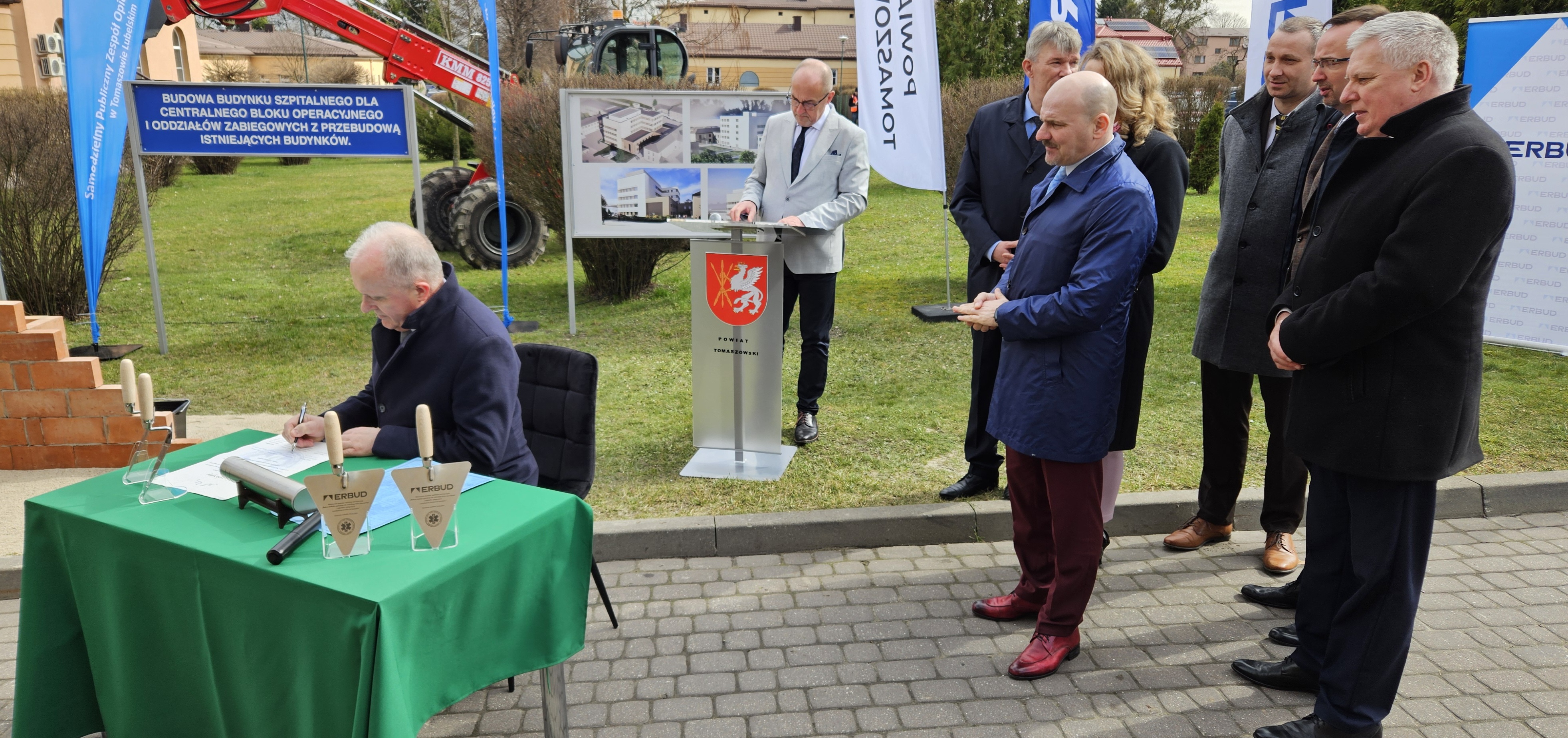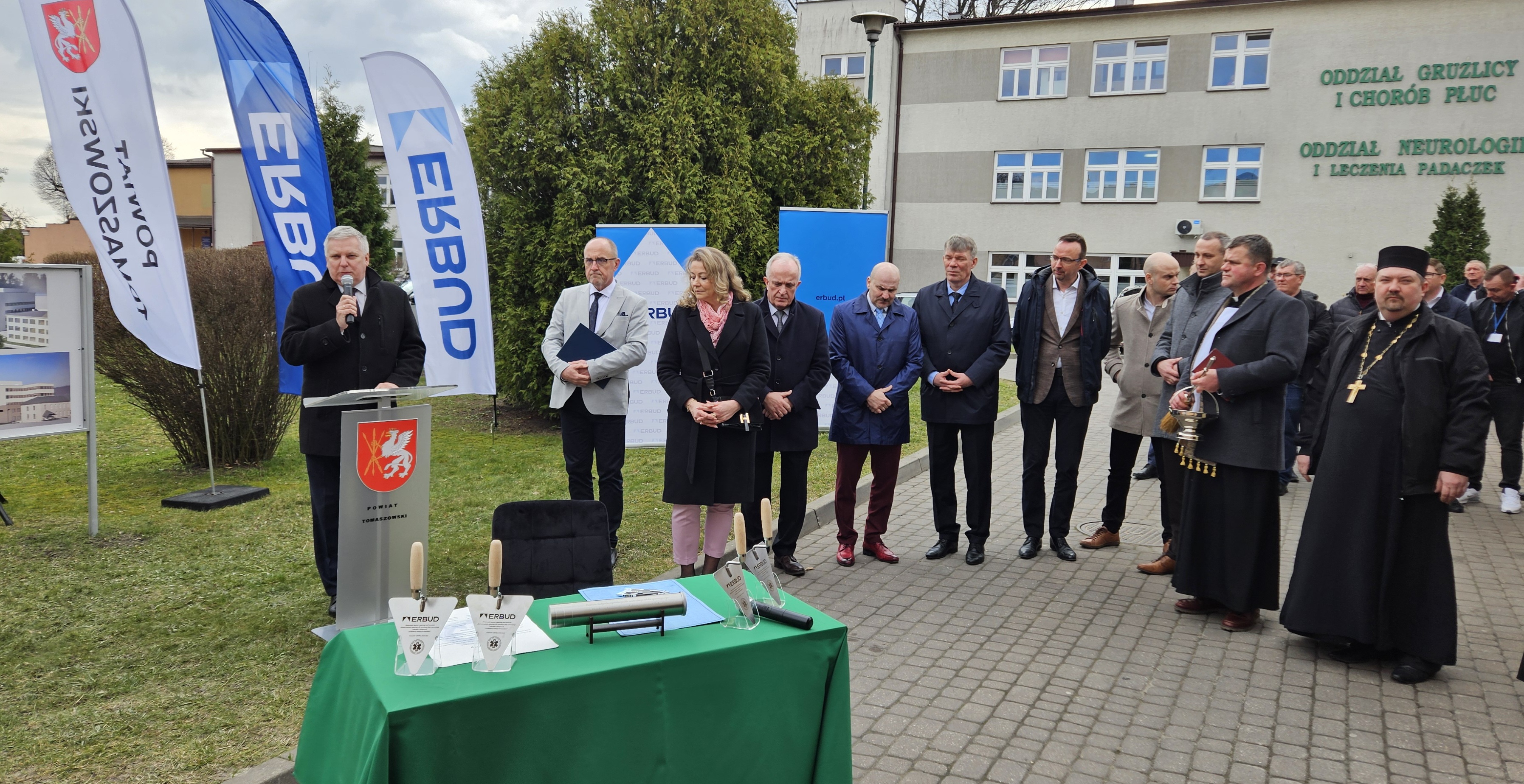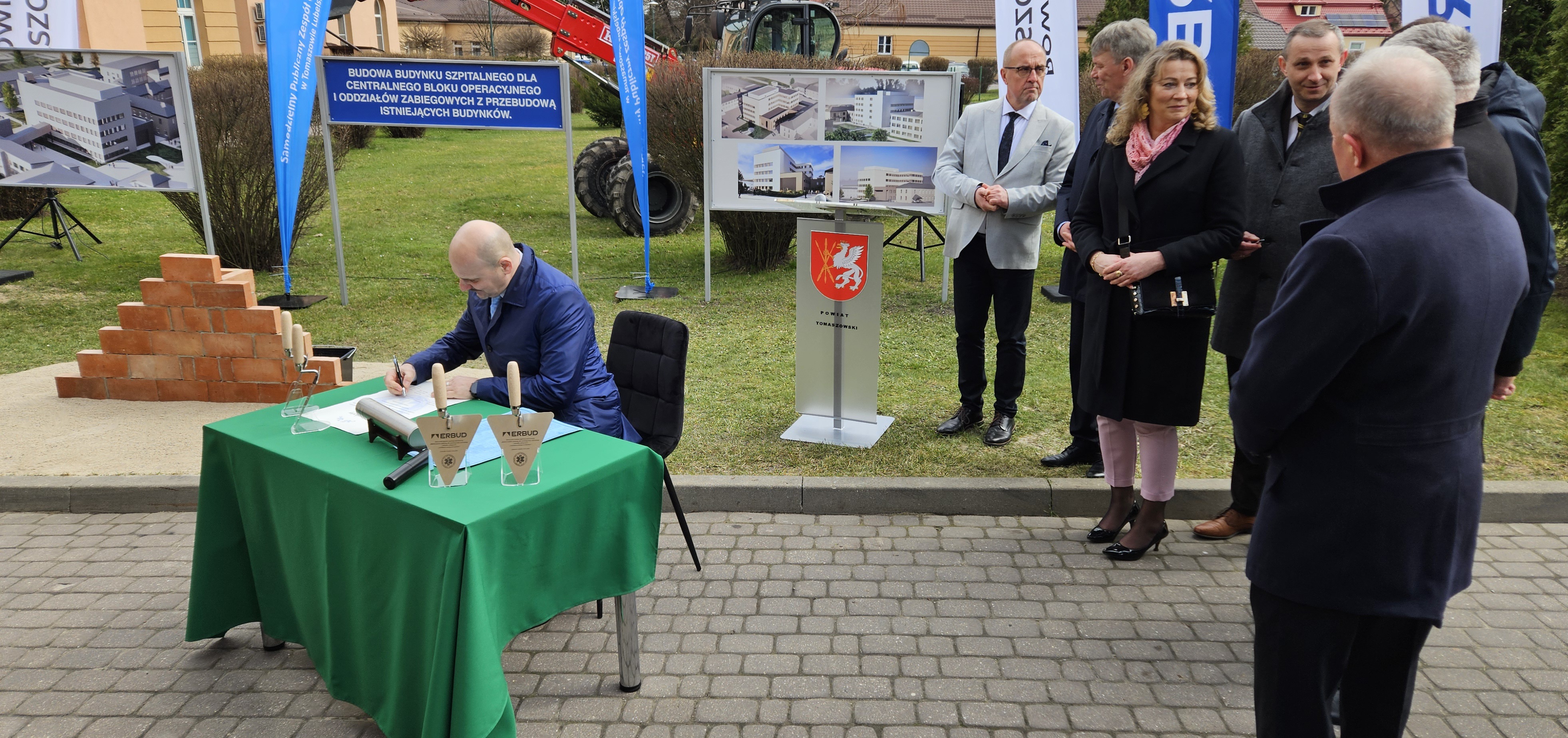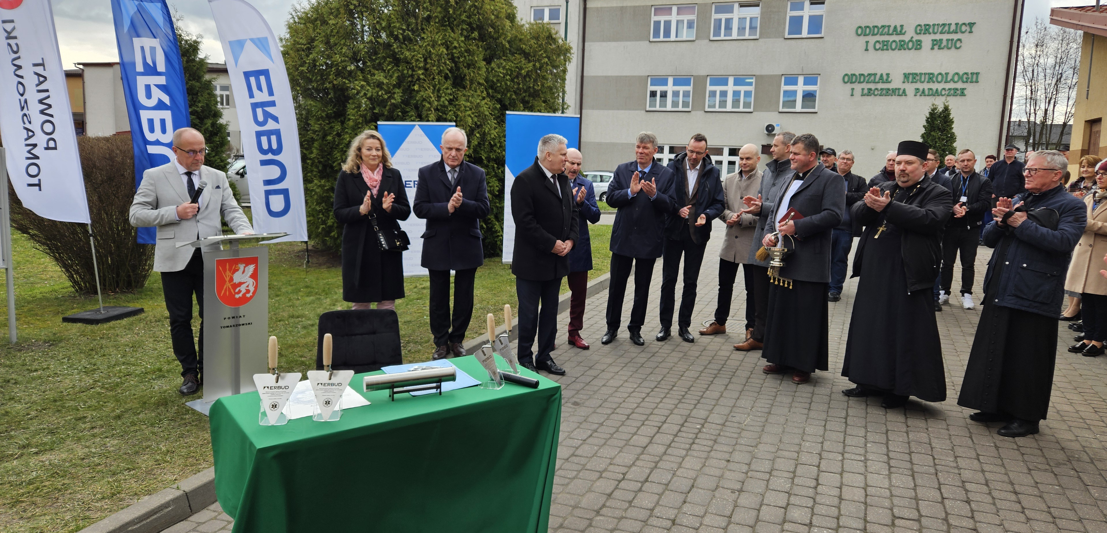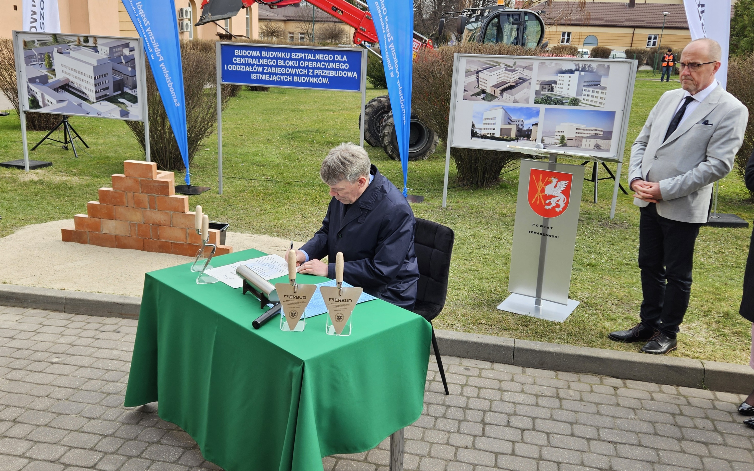 W dniu dzisiejszym wmurowano Kamień Węgielny pod „Budowę budynku szpitalnego dla centralnego bloku operacyjnego i oddziałów zabiegowych z przebudową istniejących budynków”.